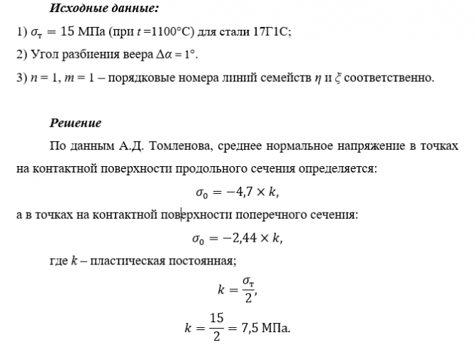Задание: определить средние нормальные напряжения в продольном (поперечном) сечении заготовки от нагруженной и свободной поверхности.