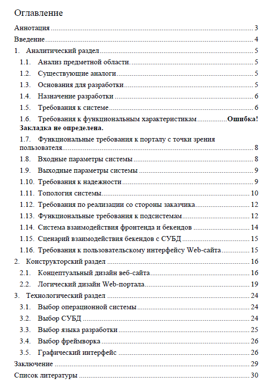 Характеристики курсовой работы