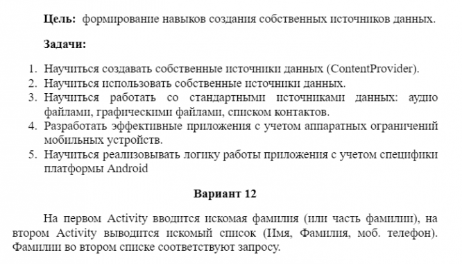 ЛР5 Разработка мобильного программного обеспечения на тему "Создание и использование собственных источников данных. работа со стандартными источниками данных"
