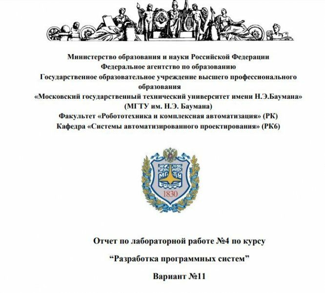 Для студентов МГТУ им. Н.Э.Баумана по предмету Разработка программных системВариант 11 - Лабораторная работа №4Вариант 11 - Лабораторная работа №4