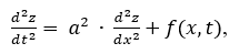 , где t - время, x - пространственная координата, вдоль которой ориентирована струна, z - отклонение (малое) точки струны от положения покоя, a - фазовая скорость, f(x,t) - внешнее "силовое" воздействие на струну.