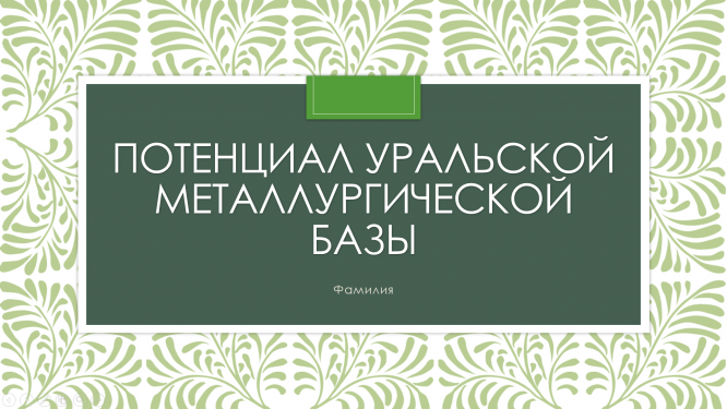 Презентация: Презентация "Потенциал уральской металлургической базы"