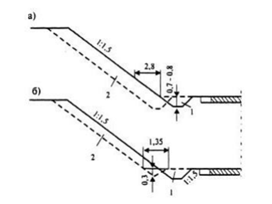 На рисунке «Схема симметричного уширения выемок с отводом поверхностной воды» цифрой «2» обозначен(а) …