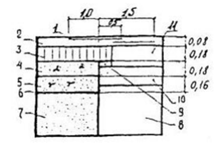 На рисунке «Конструкция стыкового соединения нового дорожного покрытия с существующим» ниже цифрой «2» обозначен(ы) … ![]()