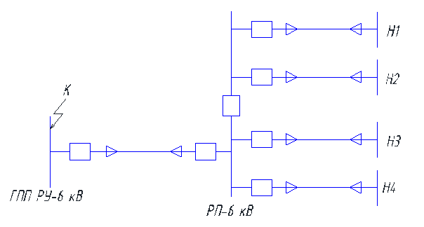 Произвести расчет уставок МТЗ и ТО для вводного, секционного выключателей и выключателей ОЛ к потребителям 6 кВ.