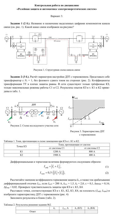 Главная » Учебные материалы » Релейная защита и автоматика » Лабораторные работы » ИГЭУ им. Ленина » 8 семестр » Номер 2 » Вариант 3 » 1. Название и назначение выделенных связи. Какой канал связи изображен на рисунке? 2. Расчёт параметров настройки ДЗТ с торможением.