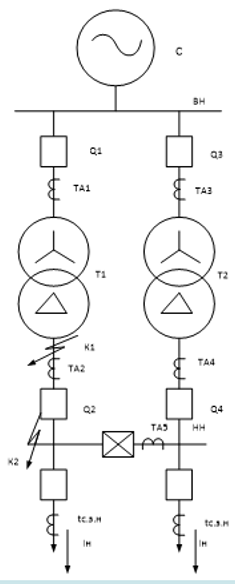 определить ток срабатывания дифференциальной токовой отсечки и оценить возможность ее использования в качестве основной защиты трансформатора. При отделении целой части от дробной в ответе необходимо указывать точку. При необходимости число нужно округлять до второго знака после запятой. Исходные данные: SТ ном = 6.3, МВА; SК3, с = 800, МВА; UВН/UНН = 38.5/11, кВ; Uk = 7.5,%; Iн = 190, А; kотс = 1.3; kодн = 1; kап = 2; ϵ = 0.1; k'отс = 4.5.