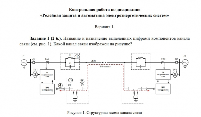 Для студентов ИГЭУ им. Ленина по предмету Релейная защита1. Название и назначение выделенных цифрами компонентов канала связи (рис. 1). Какой канал связи изображен на рисунке? 2. Расчёт параметров настройки1. Название и назначение выделенных цифрами компонентов канала связи (рис. 1). Какой канал связи изображен на рисунке? 2. Расчёт параметров настройки