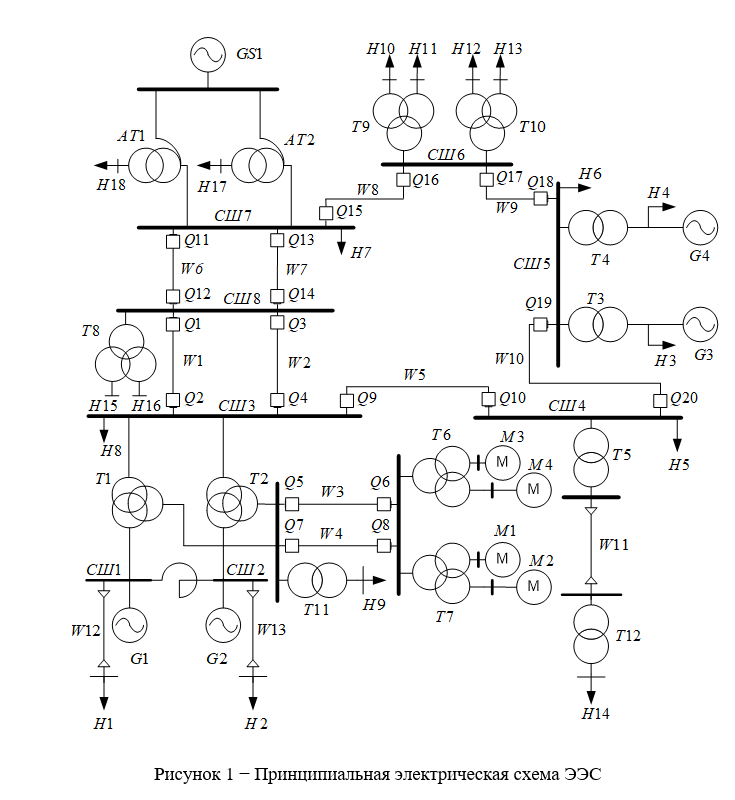 Принципиальная схема электрической сети представлена на рисунке 1.