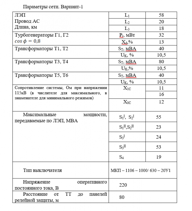 Курсовая работа: Расчет защит и автоматики вариант 1