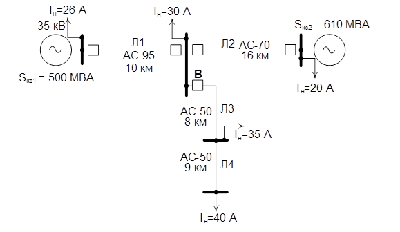 Главная » Учебные материалы » Релейная защита » Курсовые работы » Несколько классов/семестров » Определить параметры срабатывания МТЗ и ТО на выключателе В