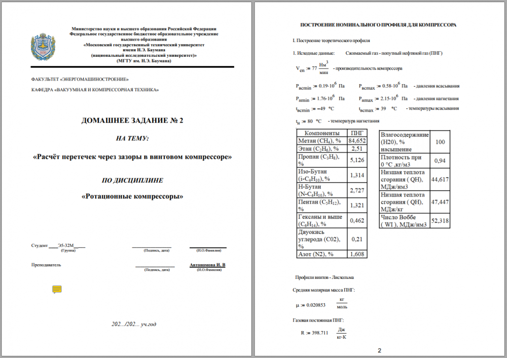 Для студентов МГТУ им. Н.Э.Баумана по предмету Ротационные компрессорыРасчёт перетечек через зазоры в винтовом компрессореРасчёт перетечек через зазоры в винтовом компрессоре