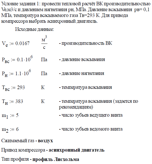 ДЗ 1: Тепловой расчет винтового компрессора вариант 1