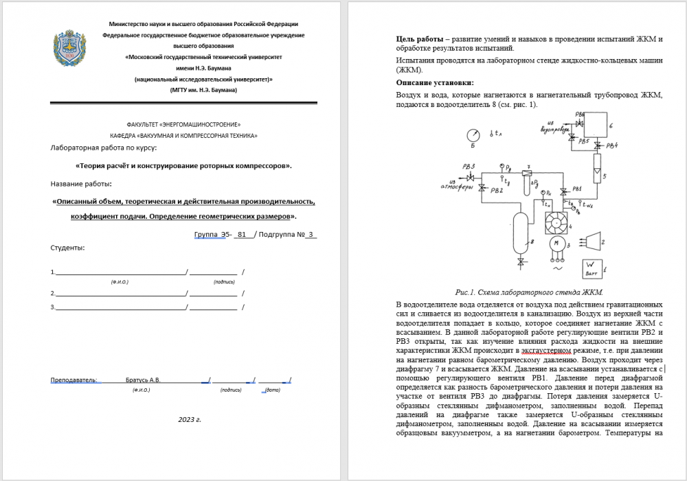 С8 РК ЛР3 (Описанный объем, теоретическая и действительная производительность, коэффициент подачи. Определение геометрических размеров ЖКМ).docx