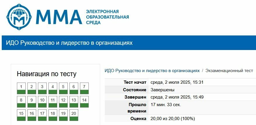 Сборник ответов к экзаменационному тесту Руководство и лидерство в организациях ММА.