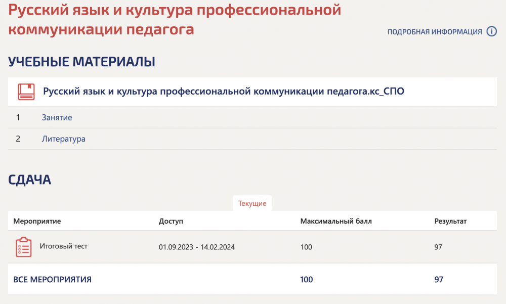 Оценивайте по списку вопросов, так как у многих предмет называется чуть по разному в зависимости от выбранной специальности, но вопросы на 90% обычно совпадают. В данном случае название предмета Русский язык и культура профессиональной коммуникации педагога, но также встречалось Русский язык и культура общения.
