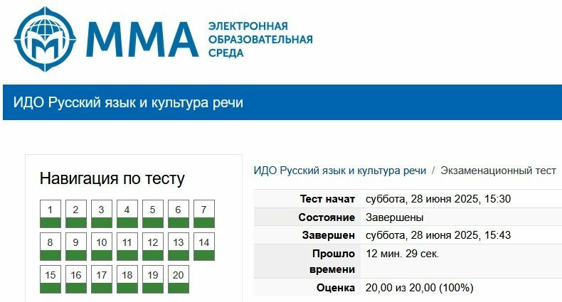Сборник ответов к экзаменационному тесту Русский язык и культура речи ММА.