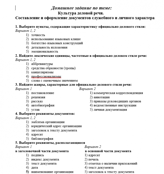 ДЗ 1: Составление и оформление документов служебного и личного характера вариант 4