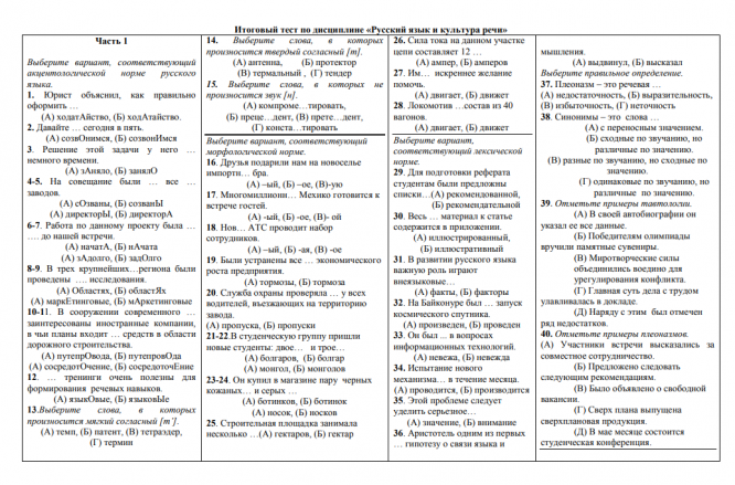 Для студентов МГТУ им. Н.Э.Баумана по предмету Русский языкИтоговый тестИтоговый тест