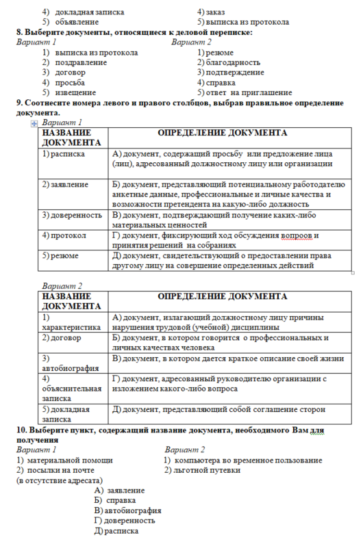 ДЗ 1: Культура деловой речи. Составление и оформление документов служебного и личного характера вариант 1