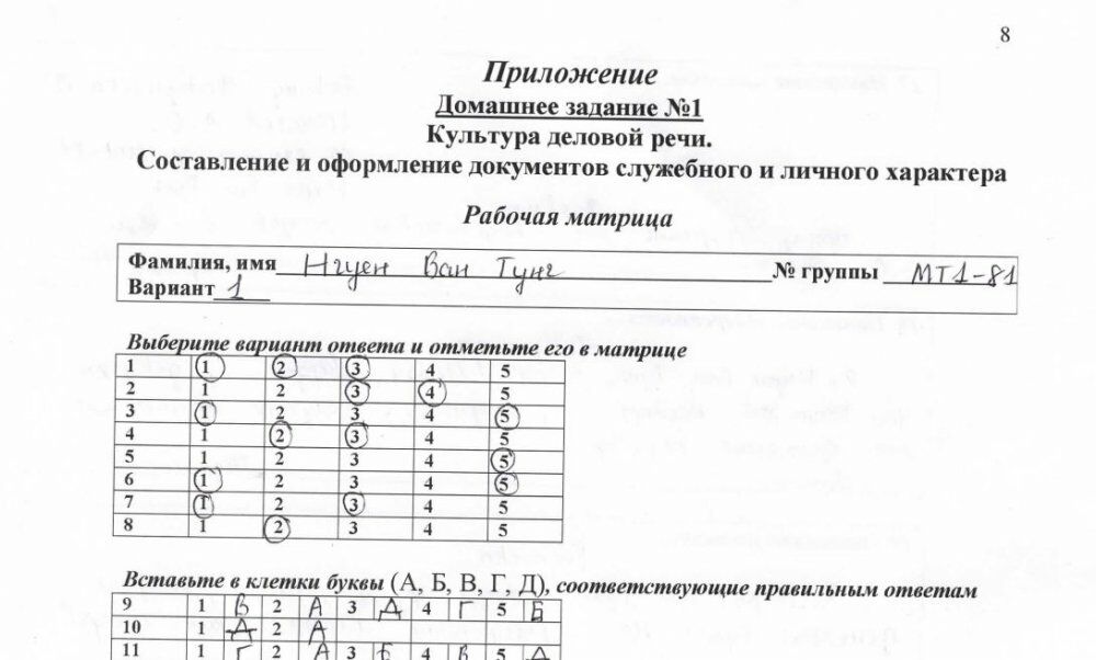 ДЗ 1: Культура деловой речи. Составление и оформление документов служебного и личного характера вариант 1