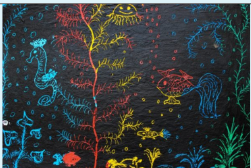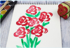 Рассмотрите внимательно фотографии. Выберите рисунки, созданные помощью печатанья и штамповки.