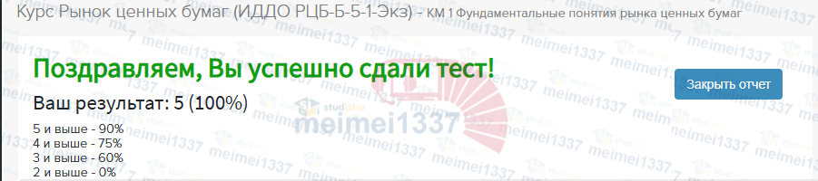 Для студентов ИДДО НИУ «МЭИ» по предмету Рынок ценных бумагКурс Рынок ценных бумаг- КМ 1 Фундаментальные понятия рынка ценных бумаг. ТестированиеКурс Рынок ценных бумаг- КМ 1 Фундаментальные понятия рынка ценных бумаг. Тестирование