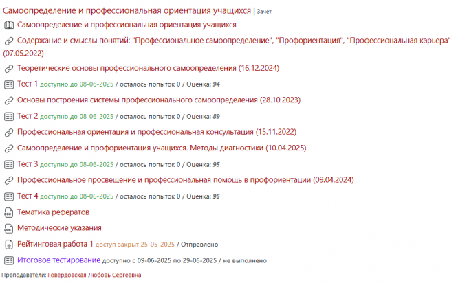 Ответы к зачёту Тесты 1-4: Самоопределение и профессиональная ориентация учащихся (Тесты 1-4)