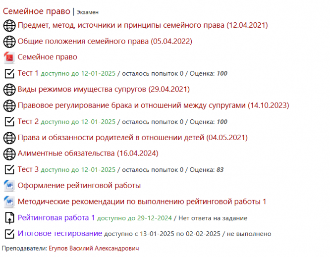 Семейное право Витте Ответы на тесты 1-4