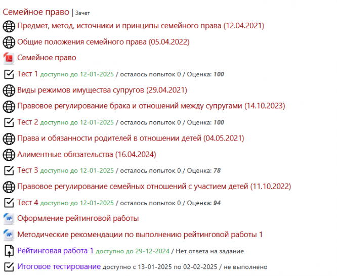 Представлены ответы на большинство вопросов из тестов 1-4 по предмету "Семейное право" для студентов Витте.