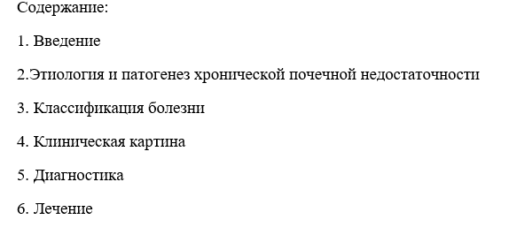 Реферат: Хроническая почечная недостаточность. Этиология. Патогенез. Классификация