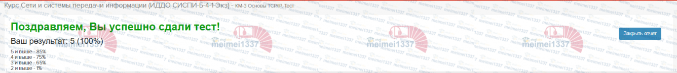 Сети и системы передачи информации - КМ-3 Основы TCP/IP. Тест - 100%