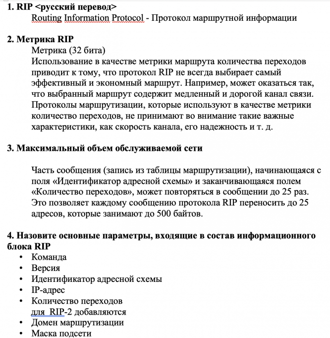 4. Назовите основные параметры, входящие в состав информационного блока RIP
