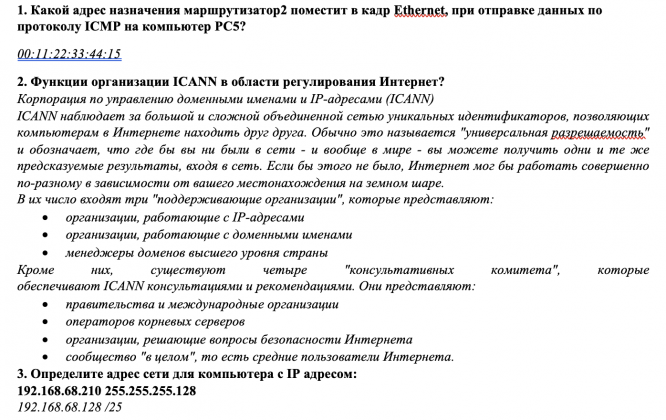 1. Какой адрес назначения маршрутизатор2 поместит в кадр Ethernet, при отправке данных по протоколу ICMP на компьютер PC5?