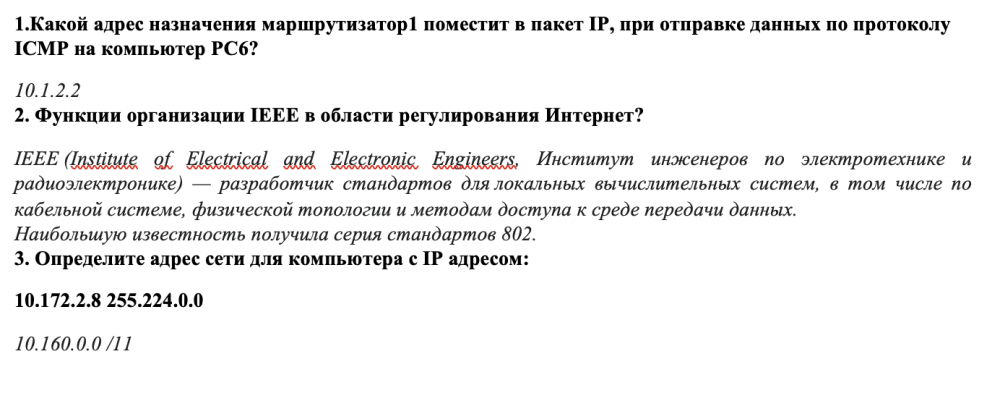 1.Какой адрес назначения маршрутизатор1 поместит в пакет IP, при отправке данных по протоколу ICMP на компьютер PC6?
