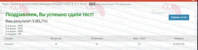 Для студентов ИДДО НИУ «МЭИ» по предмету Сети и телекоммуникации (СиТ)КМ-3. Маршрутизация. Тестирование - 85,7%КМ-3. Маршрутизация. Тестирование - 85,7%