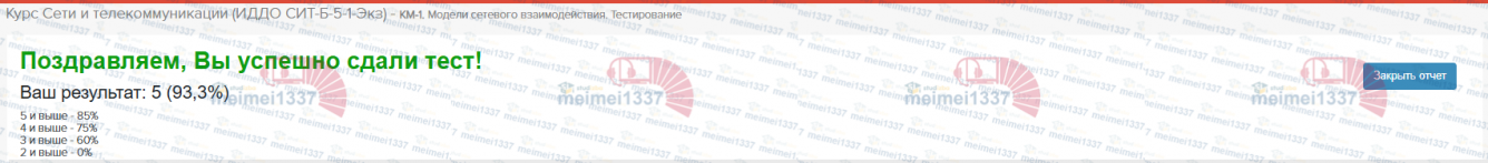 Сети и телекоммуникации - КМ-1. Модели сетевого взаимодействия. Тестирование - 93,3%