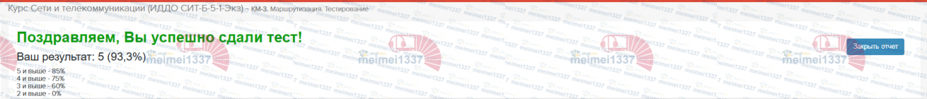 Для студентов ИДДО НИУ «МЭИ» по предмету Сети и телекоммуникации (СиТ)Сети и телекоммуникации - КМ-3. Маршрутизация. Тестирование - 93,3%Сети и телекоммуникации - КМ-3. Маршрутизация. Тестирование - 93,3%