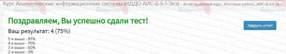 Курс Аналитические информационные системы - база ответов к итоговым тестам (экзаменам):