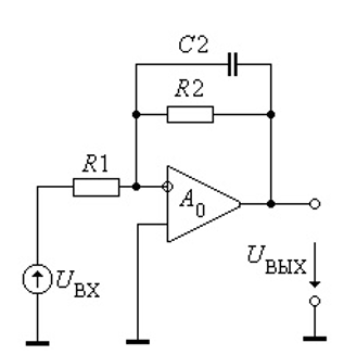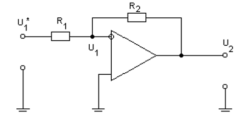 На рисунке приведена схема инвертирующего масштабного усилителя на основе идеального ОУ напряжения. При каких