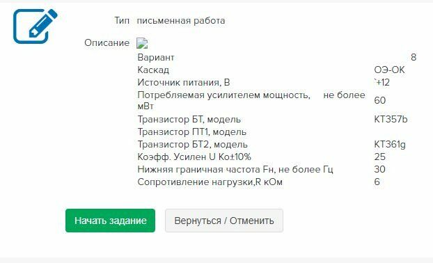 Помогу с выполнением - КМ-3. Расчет и анализ широкополосного усилителя на транзисторах. Расчетное задание