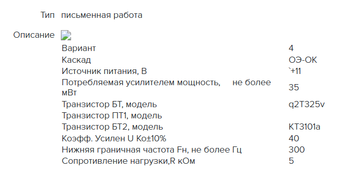 Главная » Учебные материалы » Схемотехника аналоговых электронных устройств » Домашние задания » ИДДО НИУ «МЭИ» » Несколько классов/семестров » Номер КМ-3 » Вариант 4 » КМ-3. Расчет и анализ широкополосного усилителя на транзисторах. Расчетное задание. Вариант 4