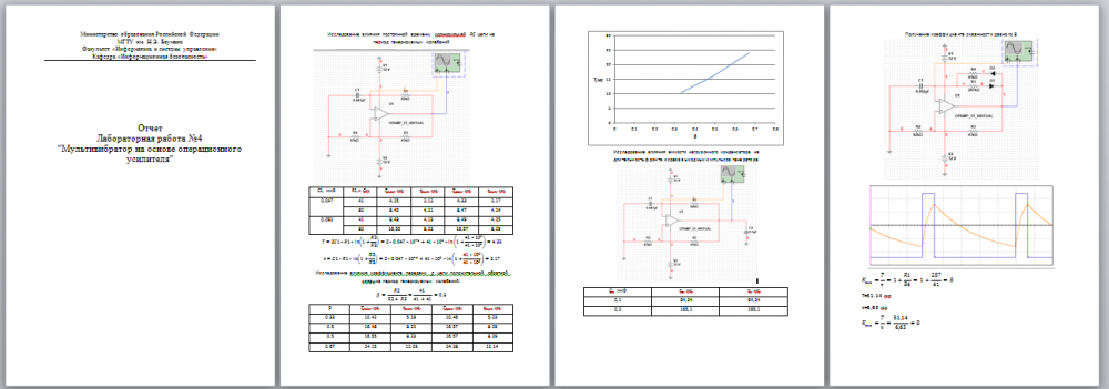 Для студентов МГТУ им. Н.Э.Баумана по предмету Схемотехника и ЭлектротехникаМультивибратор на основе операционного усилителяМультивибратор на основе операционного усилителя