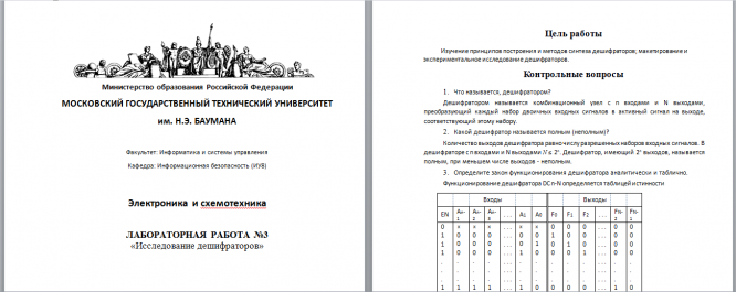 Для студентов МГТУ им. Н.Э.Баумана по предмету Схемотехника и ЭлектротехникаИсследование дешифраторовИсследование дешифраторов