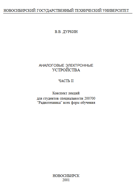 Книга: В.В. Дуркин - Аналоговые электронные устройства - Конспект лекций