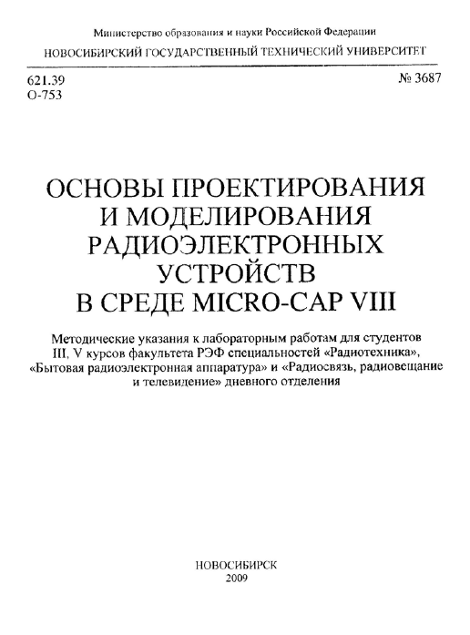 Для студентов НГТУ по предмету СхемотехникаВ.В. Дуркин - Основы проектирования и моделирования радиэлектронных устройств в среде Micro-cap VIIIВ.В. Дуркин - Основы проектирования и моделирования радиэлектронных устройств в среде Micro-cap VIII