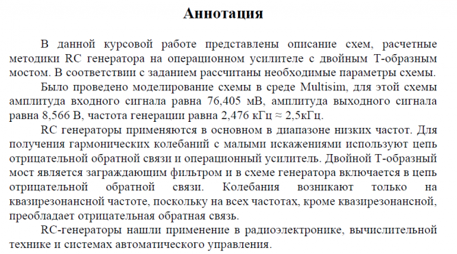 Курсовая работа: Расчет элементов схемы RC генератора на операционном усилителе с двойным Т-образным мостом