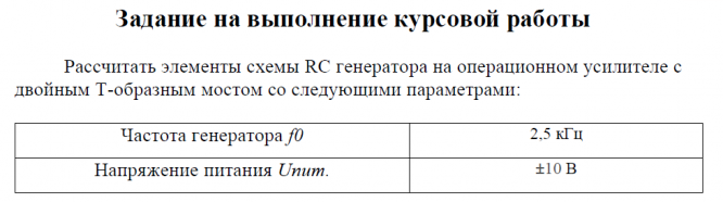 Для студентов МГТУ им. Н.Э.Баумана по предмету СхемотехникаРасчет элементов схемы RC генератора на операционном усилителе с двойным Т-образным мостомРасчет элементов схемы RC генератора на операционном усилителе с двойным Т-образным мостом