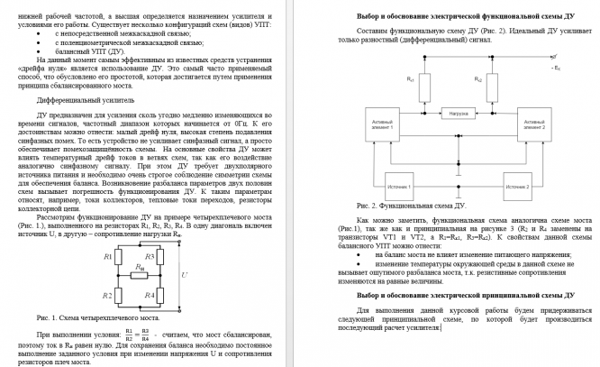 Усилитель, процесс разработки которого изложен в данной курсовой работе, следует применять в тех случая, когда возможно наличие синфазных помех в сигнале. ДУ используют в приборах, необходимых для измерения электрических потенциалов. Поэтому его широкое применение можно обнаружить, к примеру, в такой отрасли, как медицина. Здесь потенциалы снимаются с определённых точек живого организма. То есть, ДУ является неотъемлемой составляющей таких медицинский электрических приборов как: аппарат по составлении электрокардиографии (ЭКГ), прибор электроэнцефалографии. Так же важно отметить, что операционный усилитель (ОУ) стоится на основе ДУ. Тем самым, важной сферой применения ДУ в современной электронике являются устройства автоматического управления или автоматизированные системы. В них ДУ можно обнаружить, например, в процессорах или вычислительных микросхемах, предназначенные для выполнения различных математических операций (сложение, вычитание, интегрирование, выделение модуля функции, инвертирование и т.п.). ОСНОВНАЯ ЧАСТЬ Теоретические сведения Усилитель постоянного тока ДУ относится к разряду усилителей постоянного тока (УПТ). УПТ служат для усиления медленно меняющихся сигналов или сигналов, значение которых после изменения остается неизменным сколь угодно долго. Широко применяются в измерительных устройствах, в системах автоматического регулирования и в различных стабилизаторах. Главная задача УПТ — это обеспечение высокой стабильности работы усилителя при изменении напряжений источников питания, режимов работы транзисторов или сопротивлений резисторов. Существенным недостатком УПТ является «дрейф нуля» - наличие сигнала на выходе при его отсутствии на входе. К основным причинам возникновения «дрейфа нуля» можно отнести: •Изменение температуры окружающей среды; •Температурная нестабильность характеристик элементов цепи УПТ; •Нестабильность источника питания; •Влияние внешних полей; •Старение элементов схемы устройства. Помимо колебаний температуры, напряжения питания, изменениями параметров всех активных и пассивных элементов схемы усилителя, на «дрейф нуля» оказывает влияние температурная нестабильность обратного тока коллектора. То есть, даже очень медленные изменения параметров вызывают изменения в значениях тока и напряжения, которые передаются на выход усилителя и приводят к изменениям выходного сигнала. УПТ обладает нулевой нижней рабочей частотой, а высшая определяется назначением усилителя и условиями его работы. Существует несколько конфигураций схем (видов) УПТ: •с непосредственной межкаскадной связью; •с поленциометрической межкаскадной связью; •балансный УПТ (ДУ).