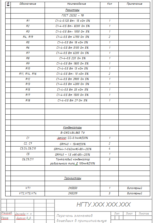 Перечень элементов принципиальной схемы. Чертежа самой схемы нет!